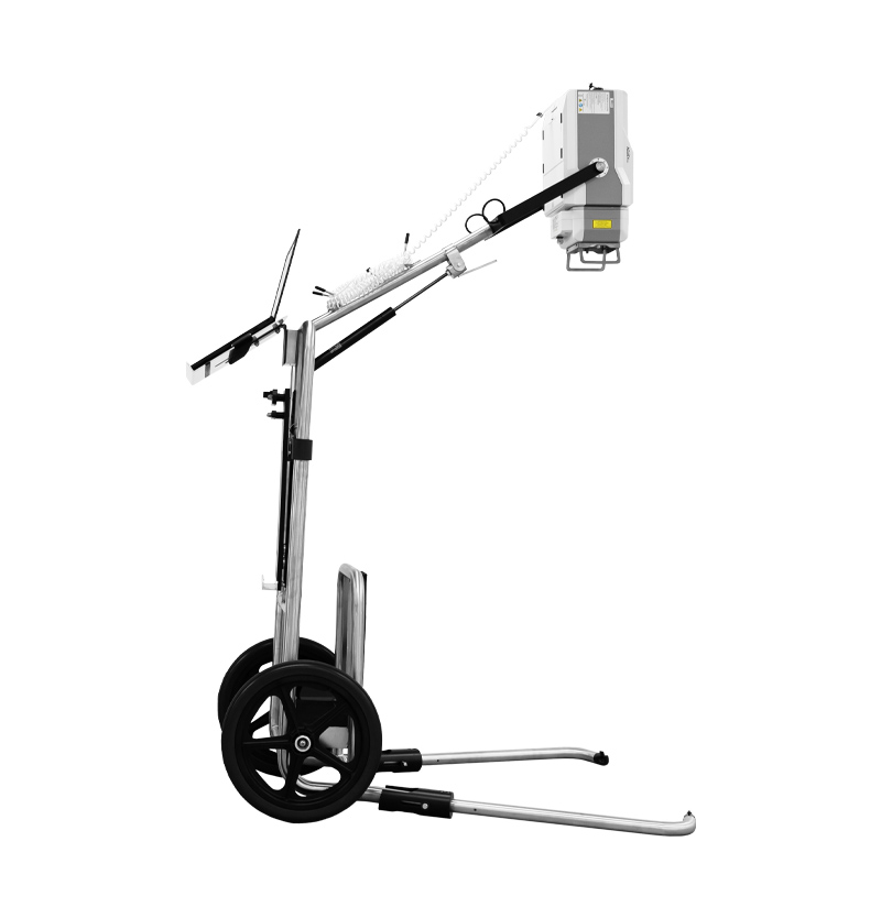 This system sits on two high quality durable wheels suited for all types of terrain which support the PDR in its folded form. The off-terrain suited wheels are especially useful in disaster relief situations where field hospitals are set up. Our PDR can easily make the trip to aid these makeshift hospitals. Also very useful in military zones when using a large heavy x-ray unit is not feasible, our portable x-ray system is perfect for the job.