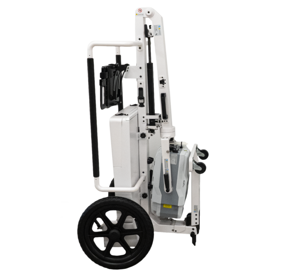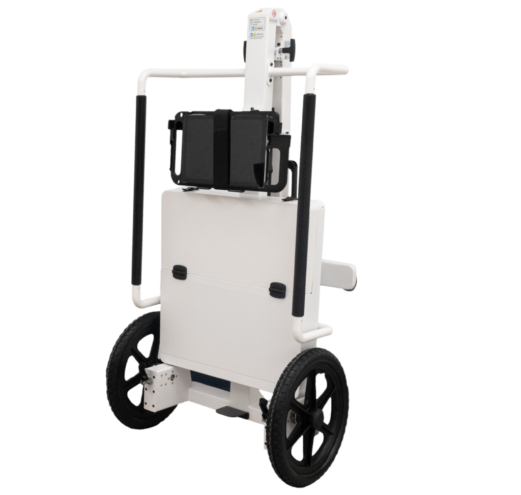 The Tough Cart has also been designed to take on all kinds of terrain and is especially useful in disaster relief or general emergency situations where x-ray needs to be moved frequently to patients and overcome locational barriers. The structural integrity of the cart has also been simplified to reduce wear and tear.
