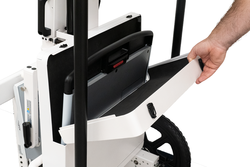 The Acuity PDR stand incorporates a carefully crafted and latchable storage bin for ultimate panel protection from the elements and ease of transport.