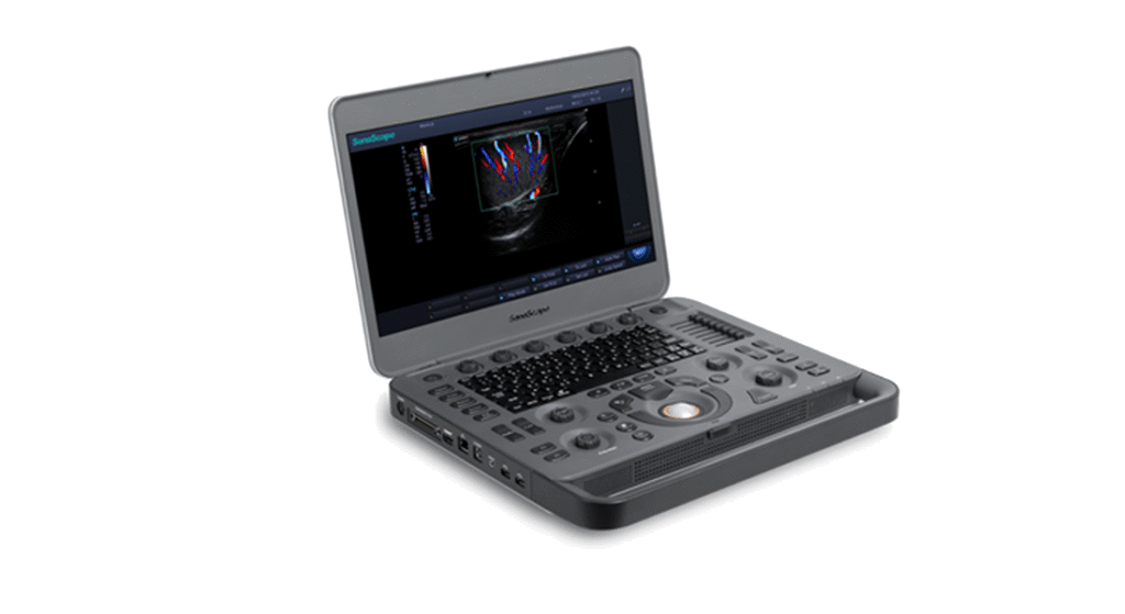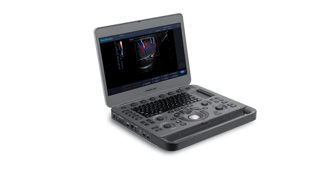 The SonoScape X5 ultrasound machine offers its first laptop-style ultrasound machine, designed for higher portability, durability, and lower cost over other ultrasounds in the SonoScape line of portable ultrasound machines.
